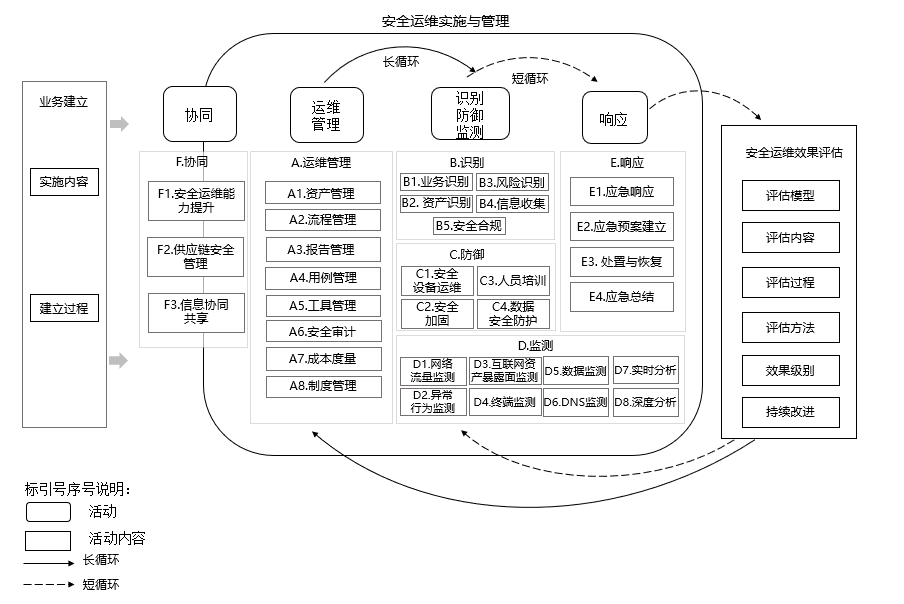 规范了识别、防御、监测和响应等主要网络安全运维的实施内容。如图2所示。
