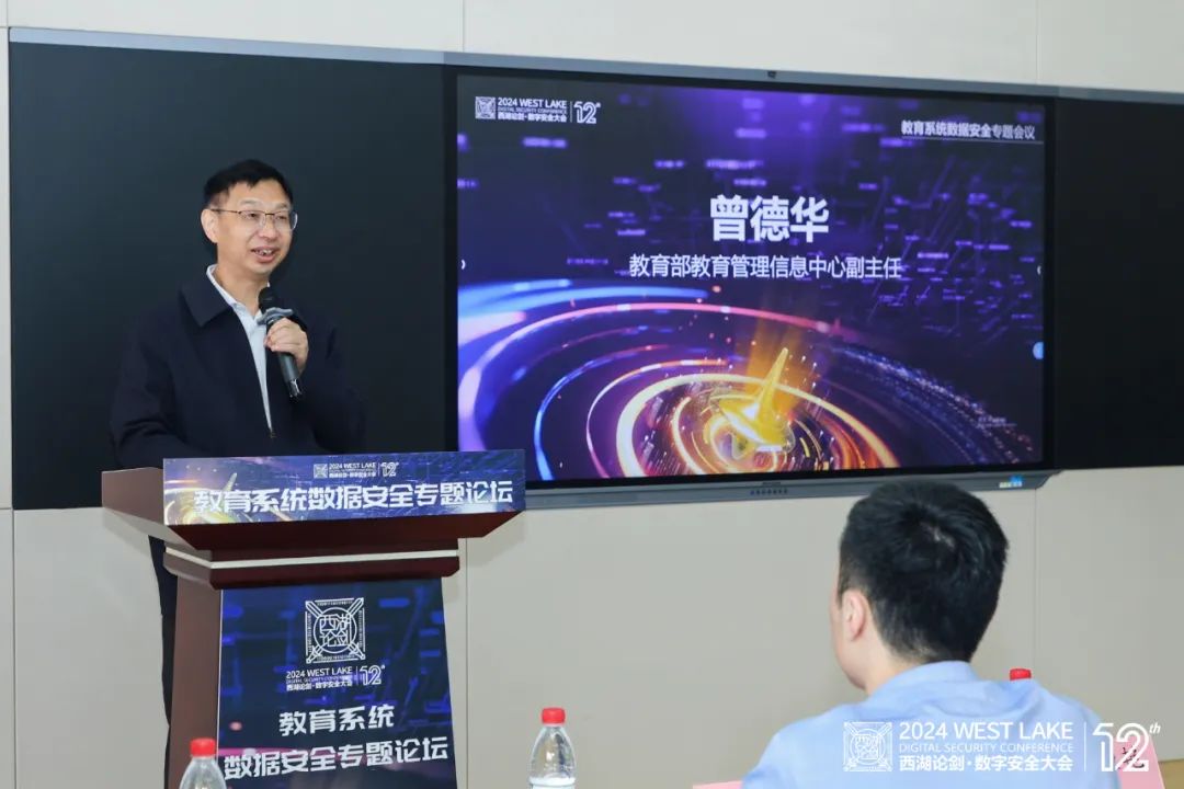 教育部教育管理信息中心副主任曾德华在致辞中表示教育是国家发展的基石,教育数字化也成为了重要突破口。对此,教育部高度重视网络安全工作,落实系列措施以切实保障。同时,数据安全成为了教育系统网络安全的重点,新兴技术带来了更大的风险与挑战,国家也出台了相关制度法规提高数据安全治理水平。在未来,将为构建安全可控的教育网络空间提供有力保障。