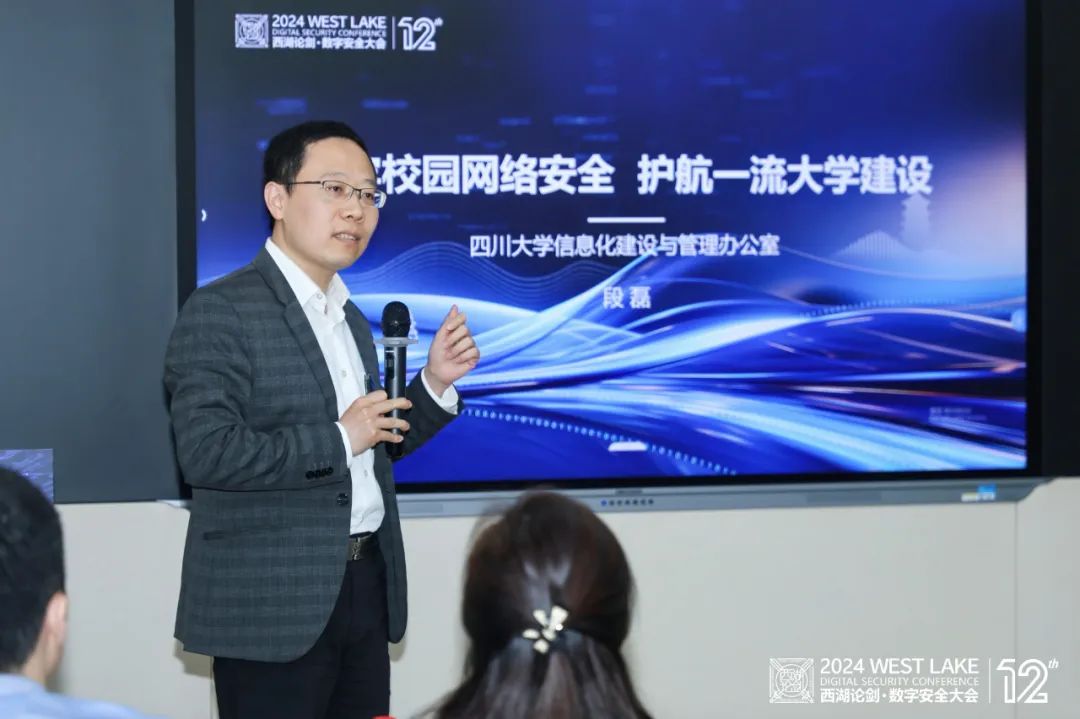 四川大学信息化建设与管理办公室主任段磊以《筑牢校园网络安全 护航一流大学建设》为主题,分享了四川大学校园信息化建设经验及成果。段磊总结了校园网络安全方面四类大的风险:个人信息泄露,黑客定向攻击,网络安全意识以及系统管理不善。他表示网络安全在技术、管理和投入三个维度里面技术维度排第一。高校可通过强化责任落实,完善保障方案,加强攻防演练提升技术实力,同时建设网络安全人才队伍,加强网络安全供应链管理,依托“第一性”原理,出现问题之后找出问题发生的最根本原因,从最根本原因拟定最持续有效的措施。