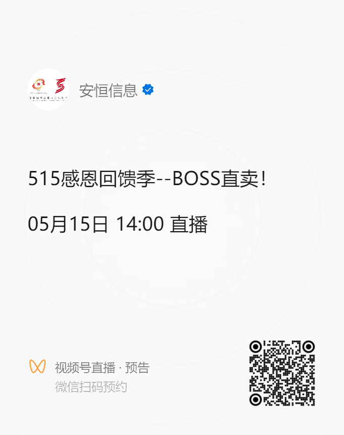 BOSS直卖!网安行业首次直播带货——安恒信息“515感恩回馈季”即将来袭!