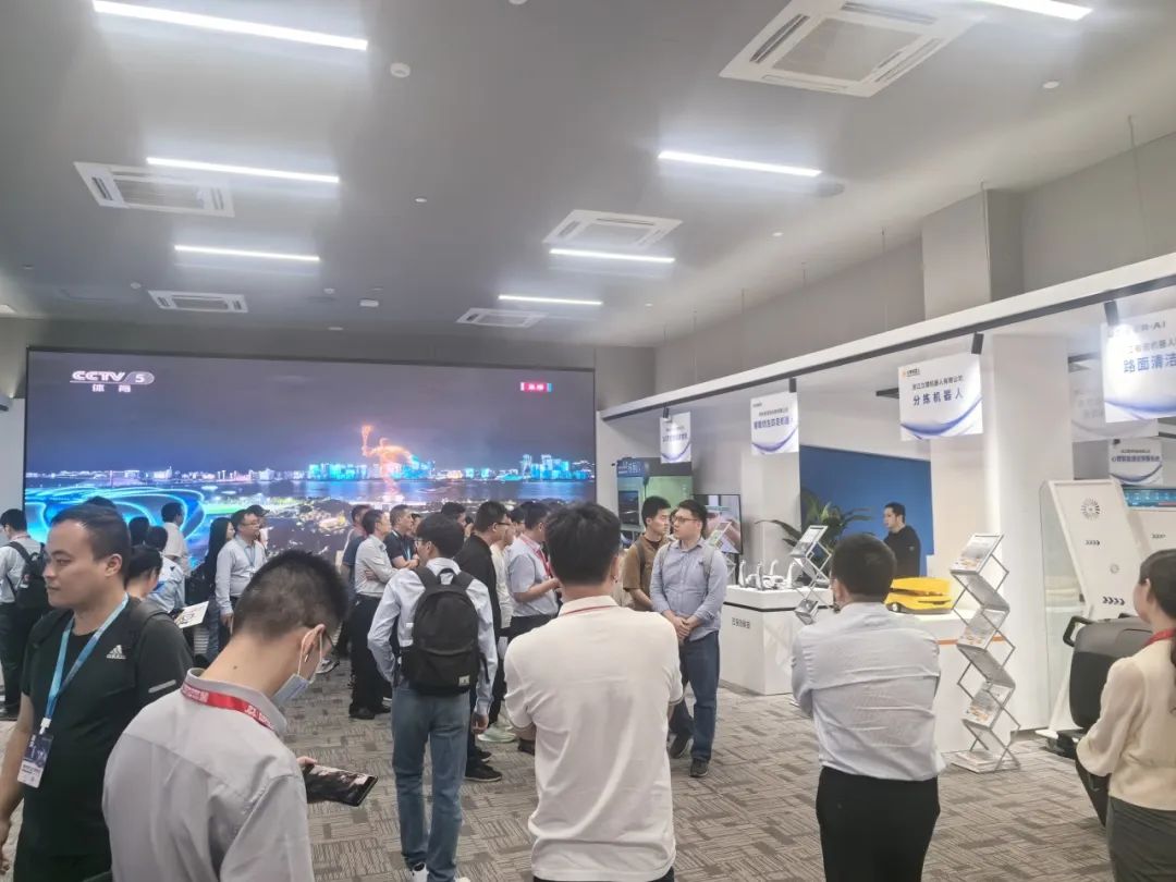为期两天的活动行程充实,干货满满。5月18日下午,调研团来到了杭州城市大脑运营指挥中心,首先参观了城市大脑产品与技术体验中心。体验中心分为“智慧治理”、“智造生产”、“智享生活”三大区域,展示了30多家结合人工智能等技术的智能产品或数字系统平台,如以亚运数字火炬手“弄潮儿”、数智绿波系统等为代表的智慧治理、以同声传译为代表的智享生活等,参观者可以在此进行沉浸式体验和互动。