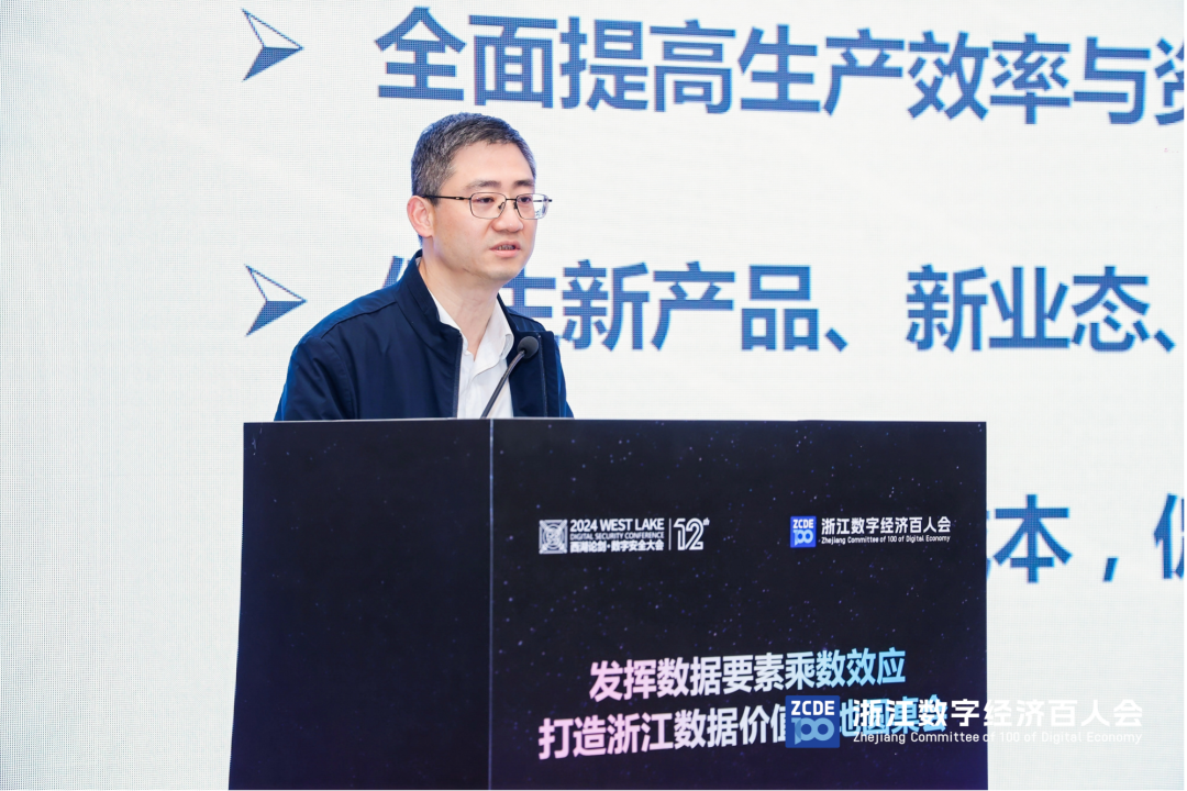 浙江省数据局党组成员、副局长陈瑜,围绕“‘数据要素×’建设的浙江做法”主题,分享浙江在公共数据授权运营、典型案例征集、以赛促用这三方面的工作实践,同时也提出浙江在数据权益、数据融合利用、数据安全等方面面临的挑战。