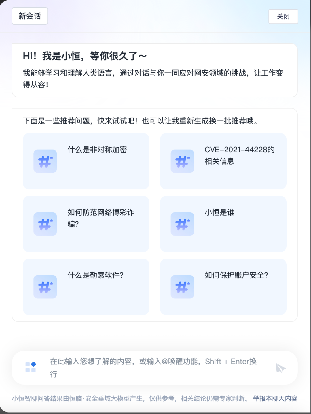 通过安恒信息自研的恒脑·安全垂域大模型加持,助力开启更加高效的安全运营。
