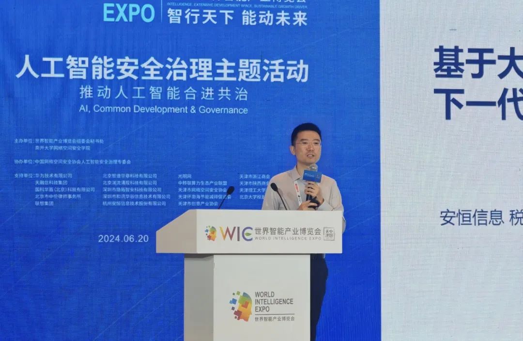 6月20日,全国唯一以智能产业为主题的国际性展会——2024世界智能产业博览会在天津开幕。人工智能安全治理主题活动作为2024世界智能产业博览会的专业级高端主题活动,聚焦“人工智能安全治理”,以“推动人工智能合进共治”为主题,由世界智能产业博览会组委会秘书处、南开大学网络空间安全学院主办,中国网络空间安全协会人工智能安全治理专委会承办。安恒信息副总裁、研究院副院长税雪飞受邀进行主题演讲,展示了安恒信息人工智能创新发展成果如何推动数字安全行业健康合规可持续发展的思考和实践。