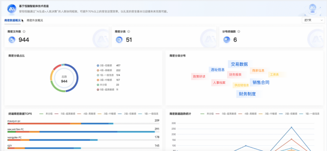 如何构建一个高效、可靠的商业秘密保护体系,成为了该集团亟需解决的重要课题。安恒信息办公智盾作为一款终端安全智慧解决方案,从数据智能识别、数据防泄漏、数据加密、溯源追踪多方面考虑为集团提供全方位的商业秘密保护方案。