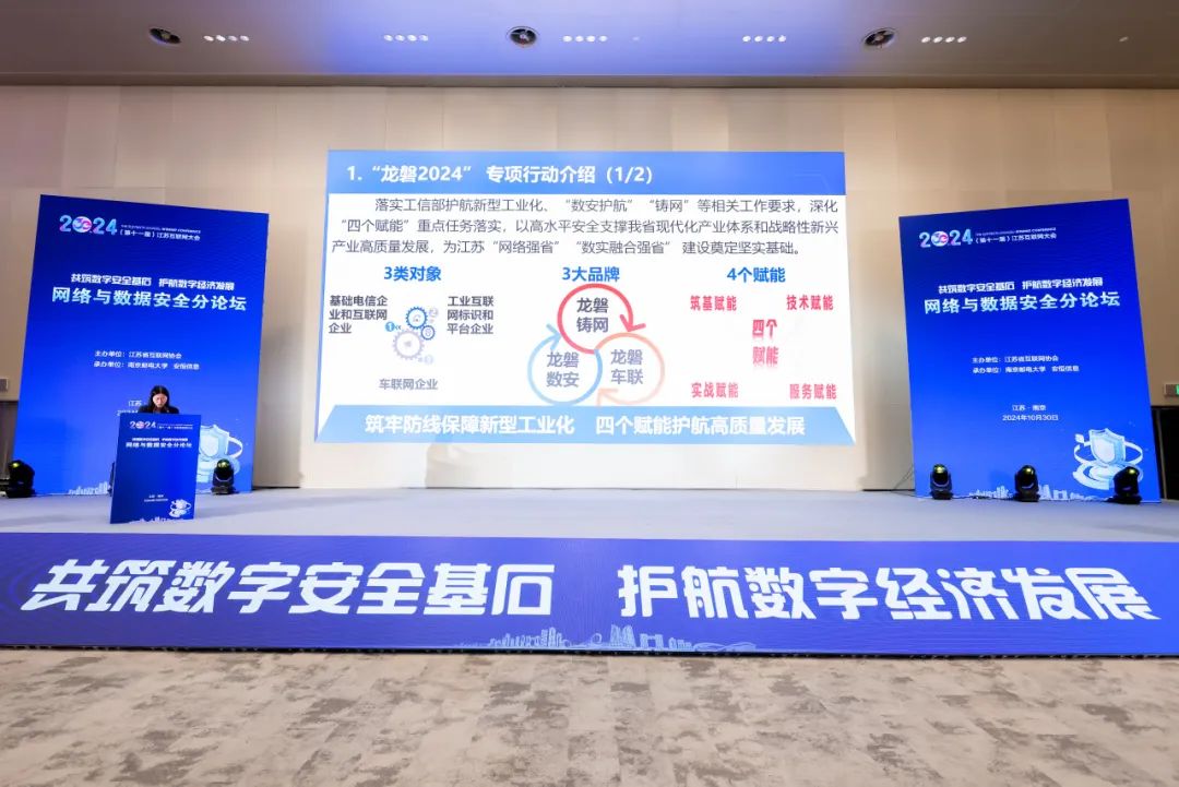 企业数据安全问题同样不容忽视,江苏省通信管理局副局长张瑞英在致辞中介绍,今年以来江苏省通信管理局通过深入实施“龙磐2024”网络和数据安全专项行动,推动提升新型融合领域安全保障能力,助力企业筑牢网络和数据安全防线;下一步将持续推动全省信息通信行业创新安全服务赋能,着力构建高效联动的安全保障工作格局,护航江苏省数字经济高质量发展。