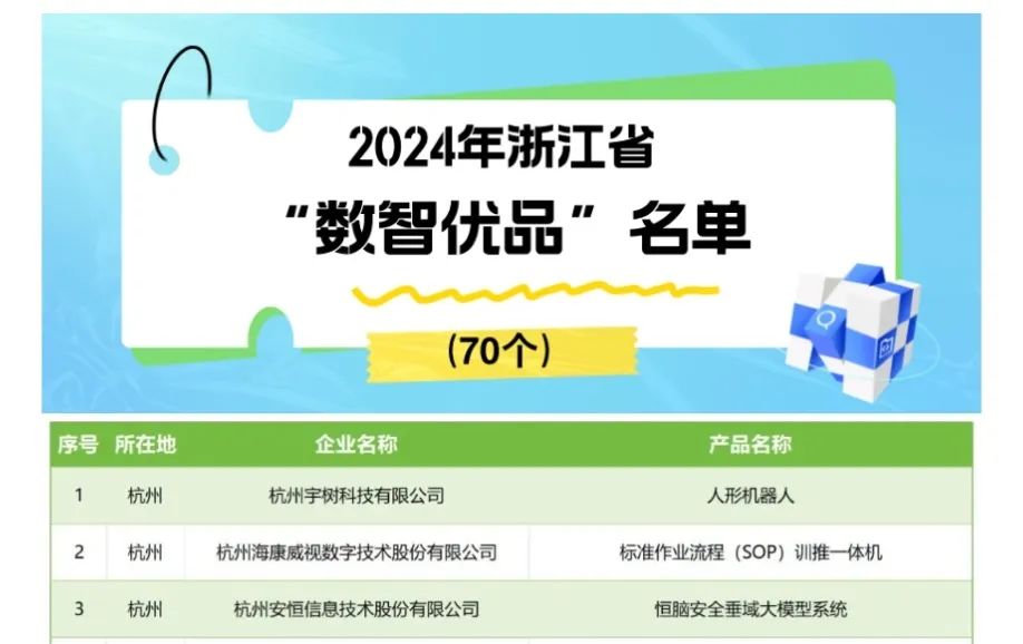 同期,浙江省经济和信息化厅正式公布了 2024 年浙江省人工智能应用场景、应用标杆企业、人工智能服务商以及“数智优品”名单。