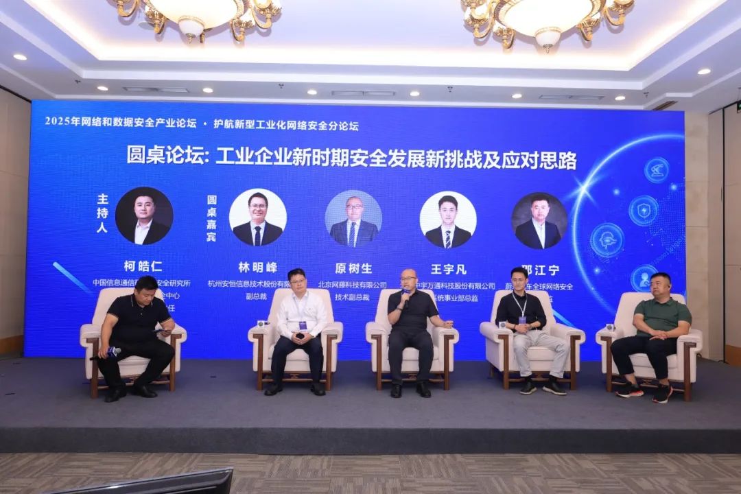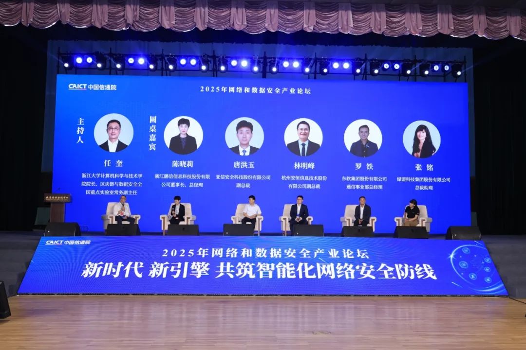 2025年8月1日,由中国信息通信研究院主办的“2025年网络和数据安全产业论坛”在北京召开。安恒信息作为核心企业代表受邀出席,副总裁林明峰参与主论坛和护航新型工业化网络安全分论坛圆桌对话环节,分享安恒在AI安全、工业互联网安全等领域的前沿实践。