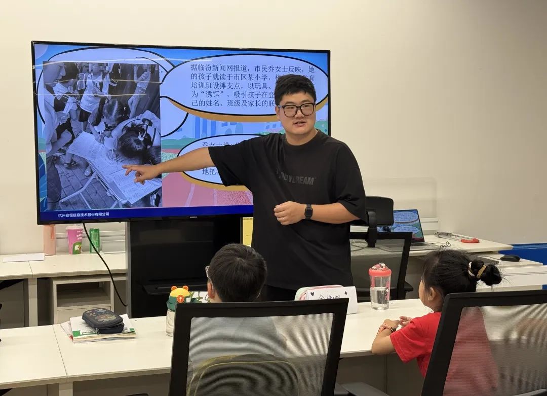 孩子们走进安恒信息展厅,通过互动体验了解网络安全知识;中央研究院专家黄巍峰以“故事化导入+游戏化教学”创新模式,带来一堂生动的网络安全科普课《互联网时代的小朋友如何安全得玩耍》,不仅让孩子们学到了实用的风险防范技巧,更在心中种下了安全意识的种子。