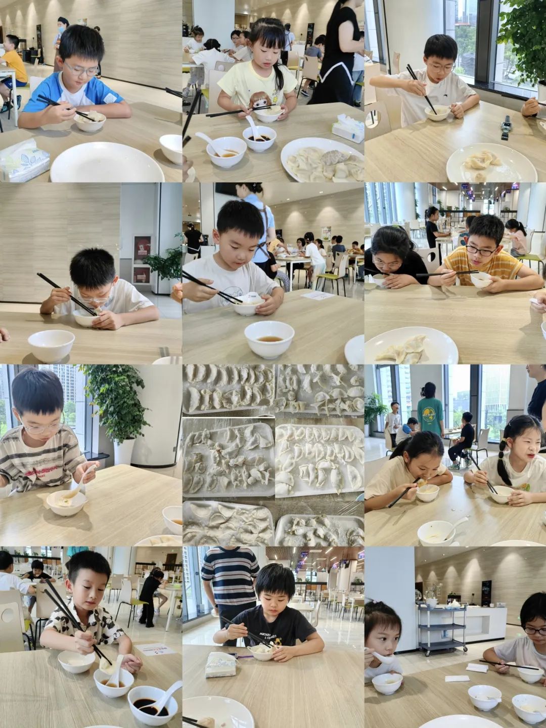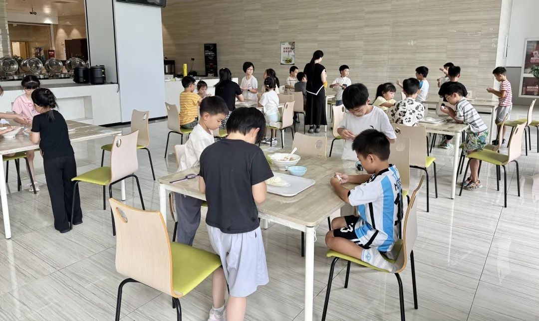 在食堂免费提供的新鲜食材支持下,孩子们学习包饺子技巧,品尝劳动成果时笑靥如花。