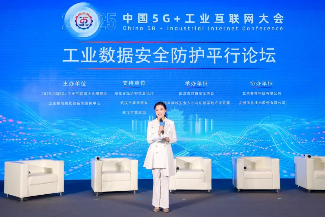 11月23日,中国5G+工业互联网大会工业数据安全防护平行论坛在武汉光谷科技会展中心成功举办。论坛以“筑盾工业数安护航”为核心指引,由工业和信息化部新闻宣传中心、2025中国5G+工业互联网大会组委会主办;湖北省经济和信息化厅、武汉市委网信办、武汉市数据局支持;武汉市网络安全协会、国家网络安全人才与创新基地产业联盟承办,安恒信息等公司协办,汇聚了来自政府部门、高校科研院所、工业制造及网络安全领域的近两百位嘉宾,共话工业数据安全治理新路径。安恒信息副总裁梁浩参与圆桌讨论,安恒信息相关专家作主题演讲。
