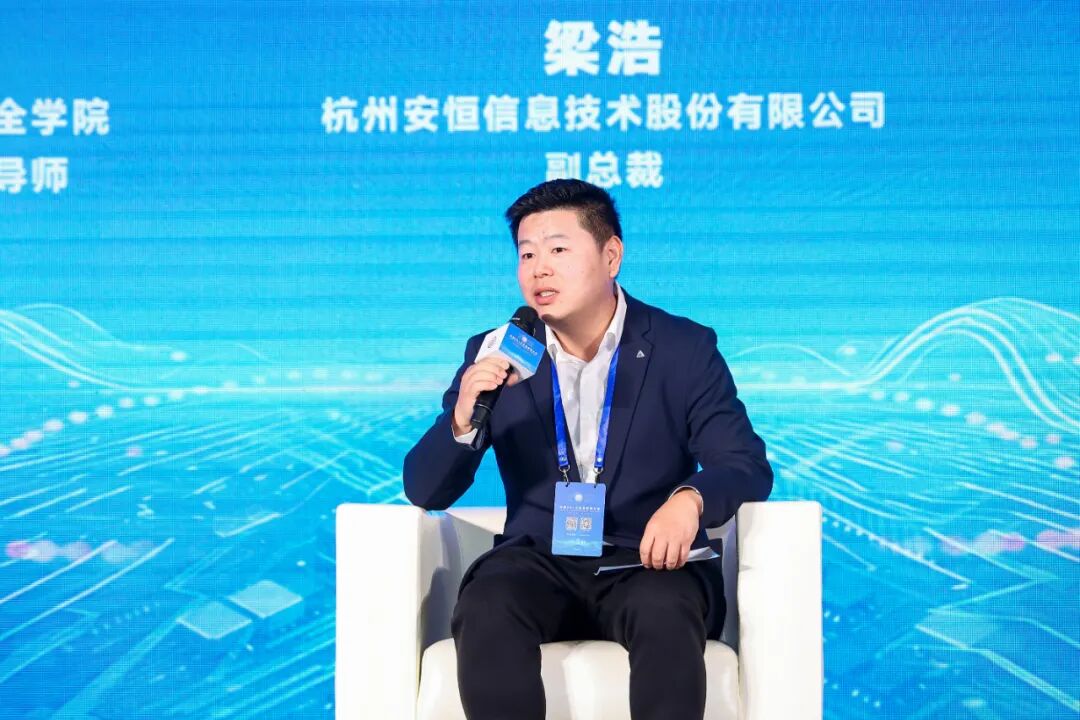 在“数据驱动时代下工业安全的跨领域协同”圆桌讨论环节,来自学术界、安全企业、科技公司与制造业的嘉宾围绕人才培养、技术落地、生态构建等议题展开深度对话。安恒信息副总裁梁浩强调,安全企业要实现从“外部赋能”到“内生安全”的转变,必须进行一场深刻的自我变革,从思维、技术、角色三个维度进行全面升级,真正与工业企业的业务和发展融为一体,构建内生的安全免疫力。