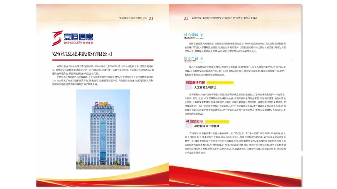 2025金智奖|安恒信息“人工智能全域安全”方案、“恒脑数据库审计智能体”双双入选
