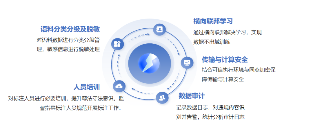 其中,数据治理是大模型工作的重中之重,需要通过数据分类分级、脱敏处理和人员培训构建管理基础,并运用联邦学习与隐私计算技术实现数据“可用不出域”。结合可信执行环境与同态加密保障全流程安全,最终通过审计机制形成治理闭环。