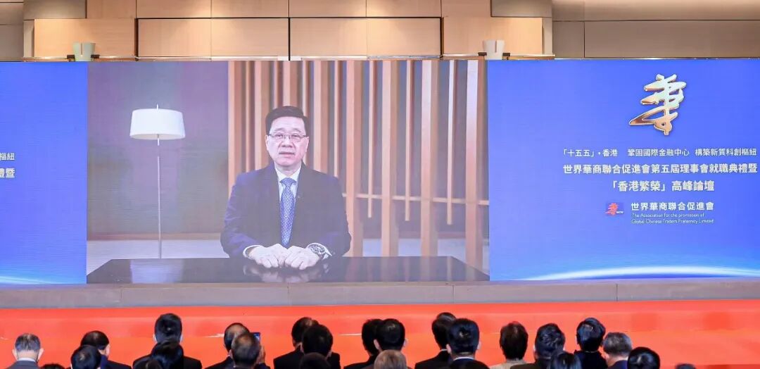香港行政长官李家超在致辞中高度肯定华商联19年来在凝聚全球华商、建立交流平台方面的贡献,并期望华商联继续与特区政府携手,共同为国家高质量发展作出贡献。