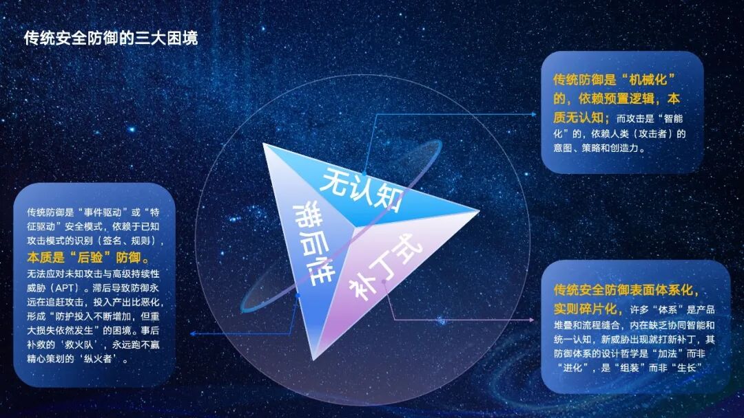 王欣深入阐述了当前传统安全防御的三大困境。