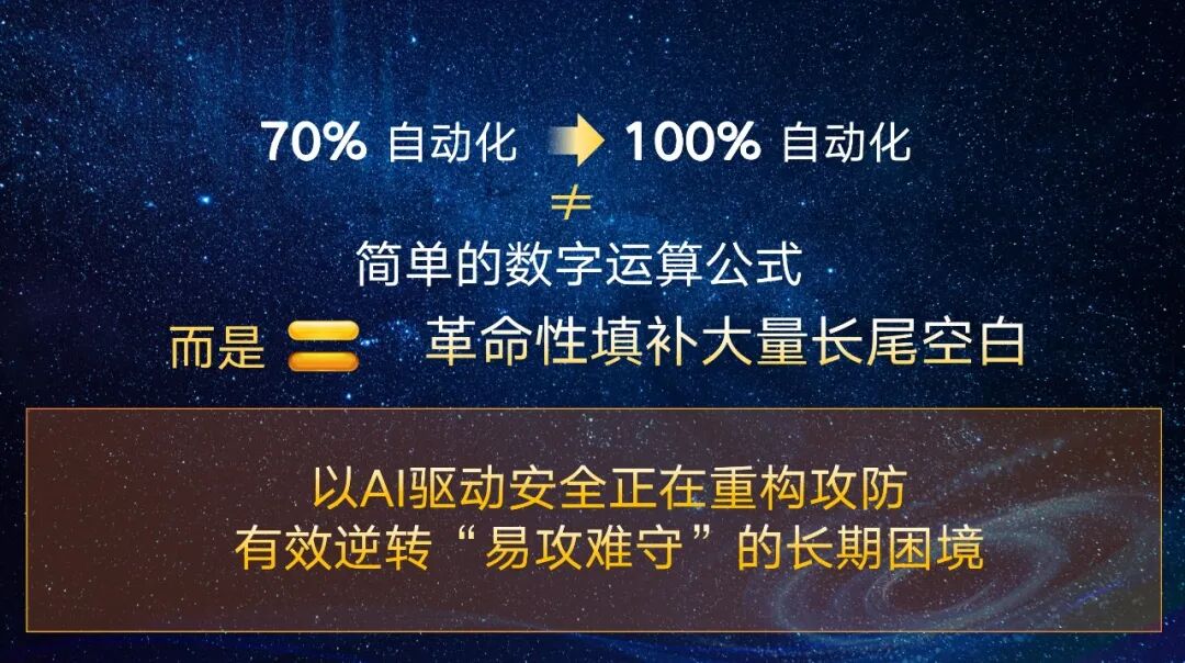 因此,传统防御是被动响应,会丧失主动权;而基于认知的AI防御可预判、诱捕,实现 initiative(主动权)从攻击者向防御者的逆转。